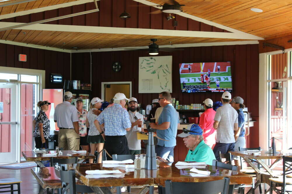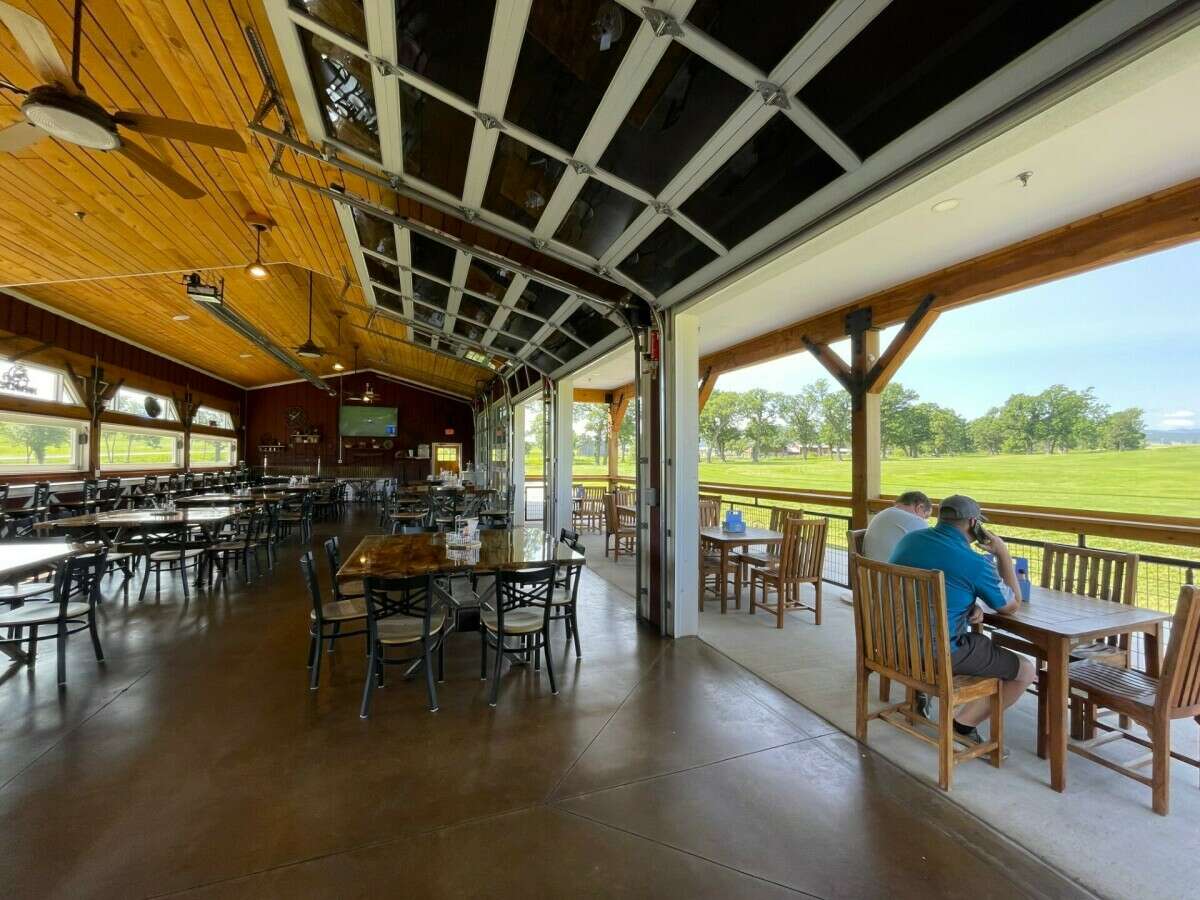 Garage doors on the west side of the main dining room open to an expansive driving range. On the east side of the building, you can enjoy the evening sun as it bathes the putting green. The lower seating level features a fireplace that goes perfectly with a glass of wine or frosty local tap beer.